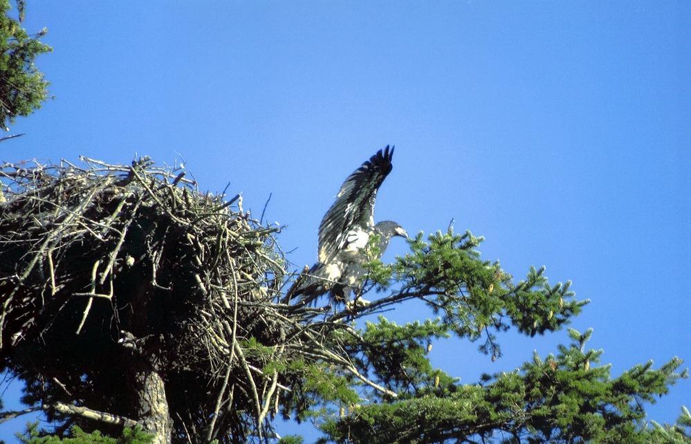 Young eagles, following the example of their parents, go to the edge of the nest and begin flapping their wings, strengthening their flight flight muscles and getting the feel of the wind lifting them off the nest. them. The begin to take short, tentative flights while their parents watch. Maybe at first they only make it over to a nearby branch. Sometimes they may even fall. Even if they fall, their parents remain with them, feeding them, encouraging them and protecting them until these young eagles are able to rise up and soar.